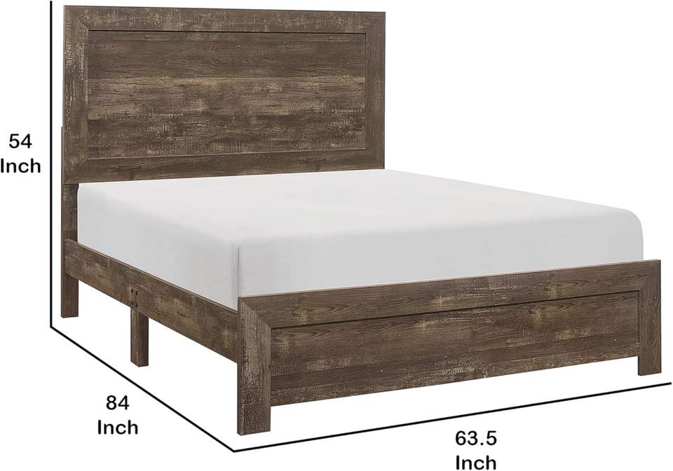 เตียงไม้ดีไซน์ดั้งเดิมขนาดควีนไซส์ พร้อมขาตั้งแบบบล็อก รองรับเตียงแบบแผงสีน้ำตาล