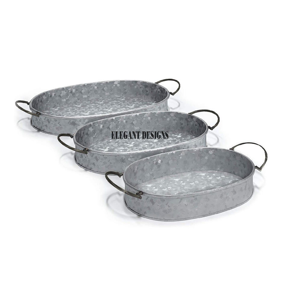 ชุดจานเสิร์ฟกัลวาไนซ์ดีไซน์ดั้งเดิมจานเสิร์ฟสามชิ้นจานเสิร์ฟแบบแฮนด์เมด