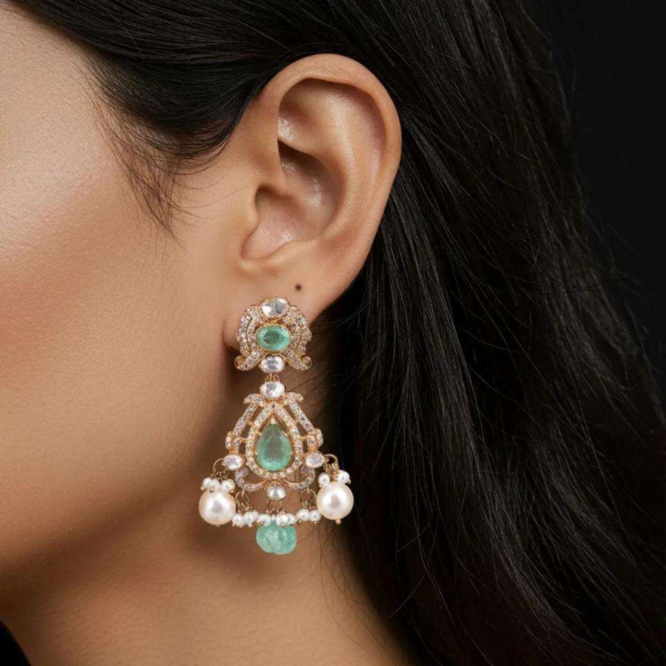 ชุดสร้อยคอเงินแท้ 925 ดีไซน์ดั้งเดิม Gajaah ประดับมรกตและมุก พร้อมจี้ชุบทอง สำหรับผู้หญิง