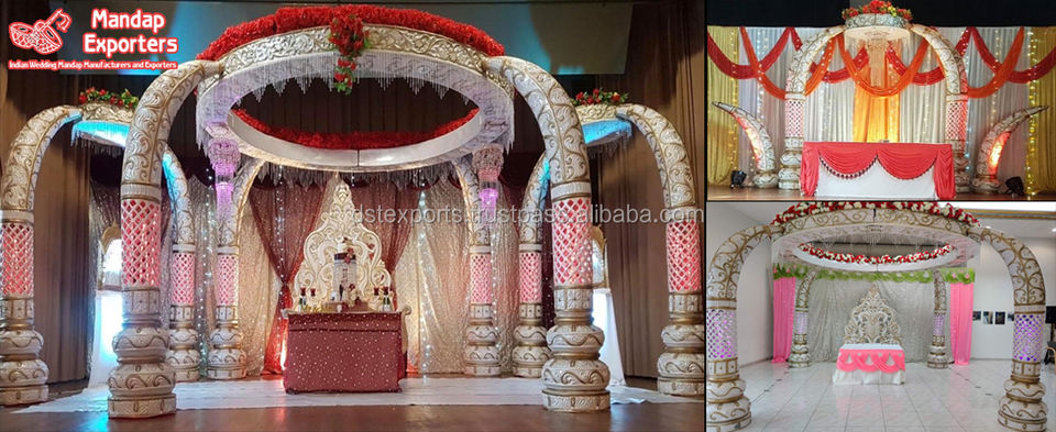 Mandap นักออกแบบแบบดั้งเดิมสำหรับงานแต่งงานทางใต้แกรนด์โกลด์อินเดียอินเดียอินเดียตกแต่งแบบดั้งเดิมและยิ่งใหญ่อินเดียใต้สหรัฐอเมริกา