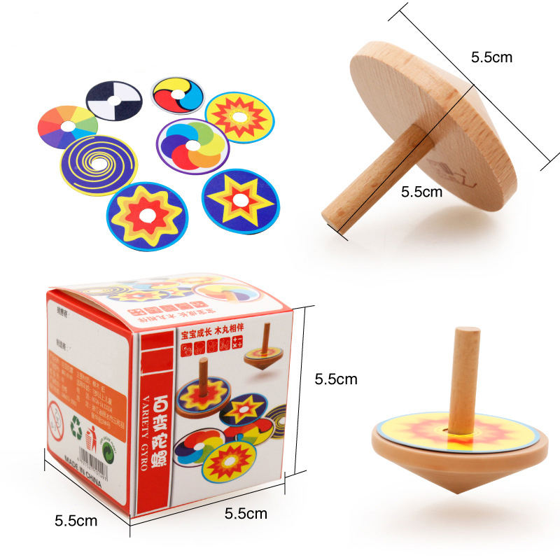 ลูกข่างไม้แบบดั้งเดิมพร้อมการ์ดสีเปลี่ยนได้สำหรับเด็ก (การ์ดลายสุ่ม)