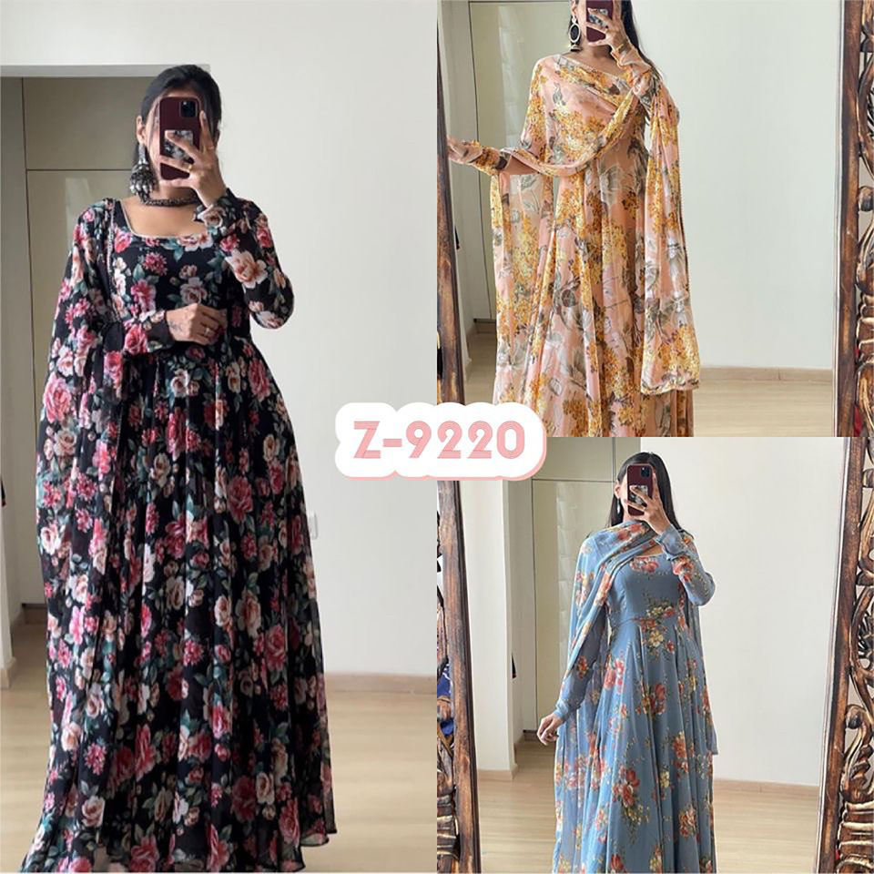 Anarkali kurti ชุดเดรสอินเดียพิมพ์ลายแบบดั้งเดิมดั้งเดิมมีความยาวเต็มรูปแบบและ dupatta
