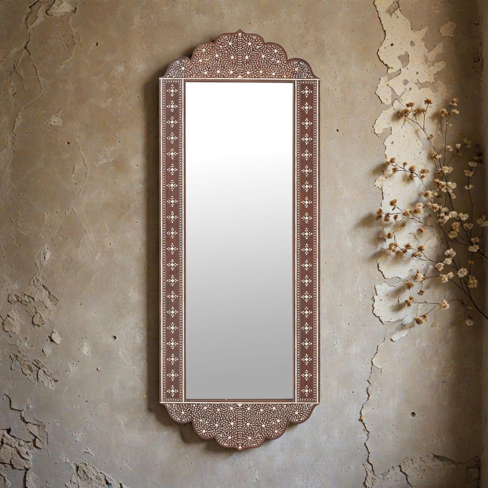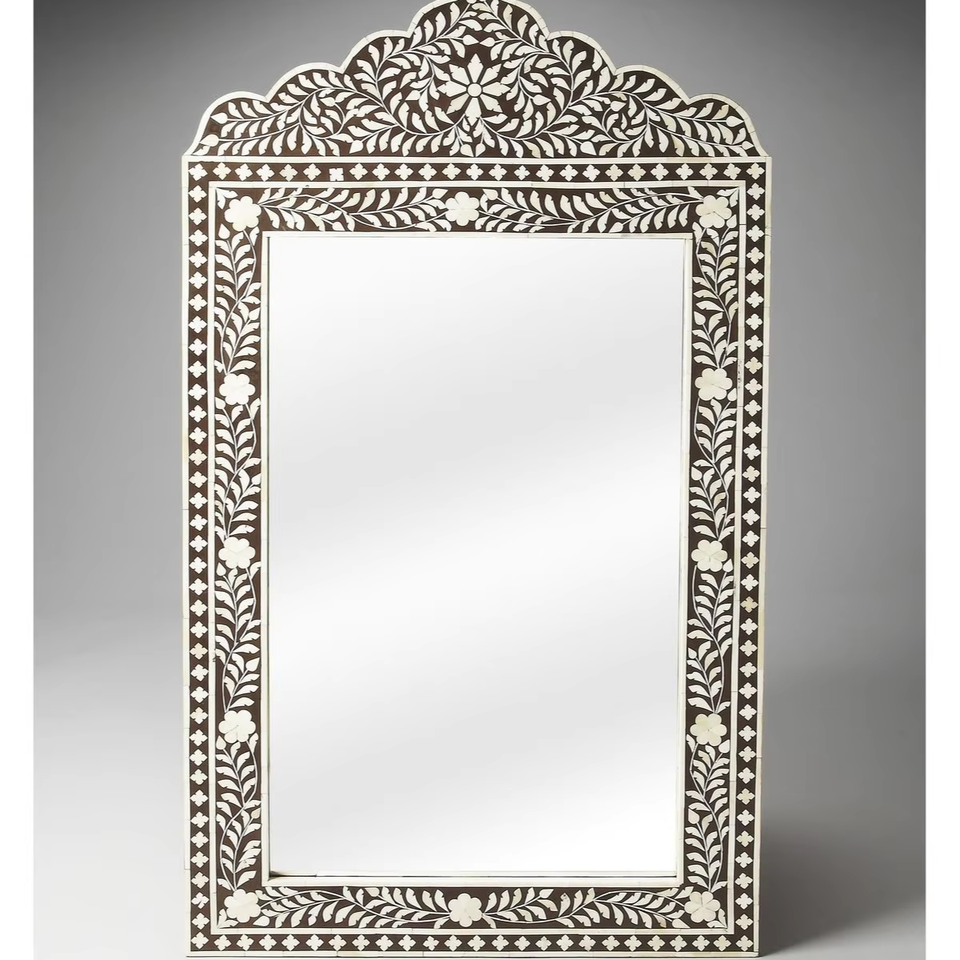 กระจกติดผนังลายดอกไม้แบบดั้งเดิม ประดับด้วยกระดูกฝังบนแผ่น MDF ทำด้วยมือ สไตล์ชาติพันธุ์ สำหรับตกแต่งบ้าน ของขวัญเทศกาลดีวาลี