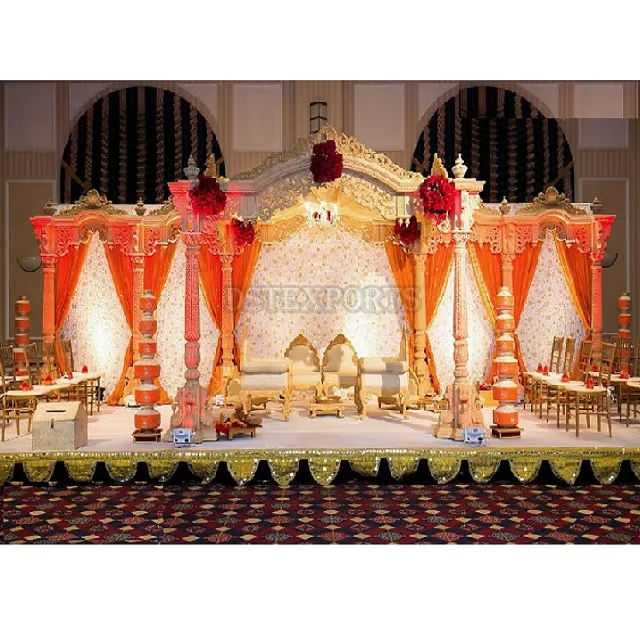 แบบดั้งเดิม & ฟิวชั่นงานแต่งงานของอินเดีย Mandapam ส่งออกสไตล์บอลลีวูดพิธีแต่งงานเสาสี่เหลี่ยม