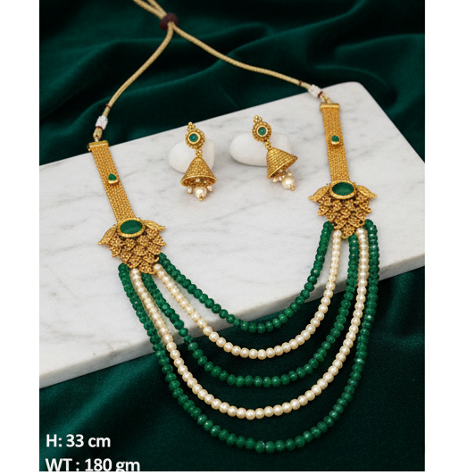 สร้อยคอทองคำแบบดั้งเดิมสำหรับผู้หญิงที่มีการออกแบบไข่มุกสำหรับรูปลักษณ์ระดับพรีเมียม