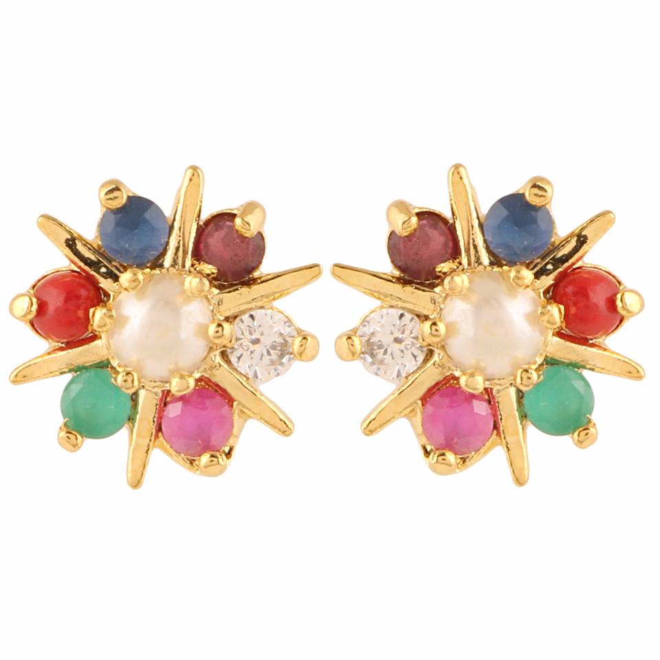 ต่างหูชุบทองแบบดั้งเดิมที่ไม่ก่อให้เกิดอาการแพ้ดอกไม้ลูกบาศก์เซอร์โคเนีย CZ แบบเจาะหูเครื่องประดับสำหรับเด็กผู้หญิง