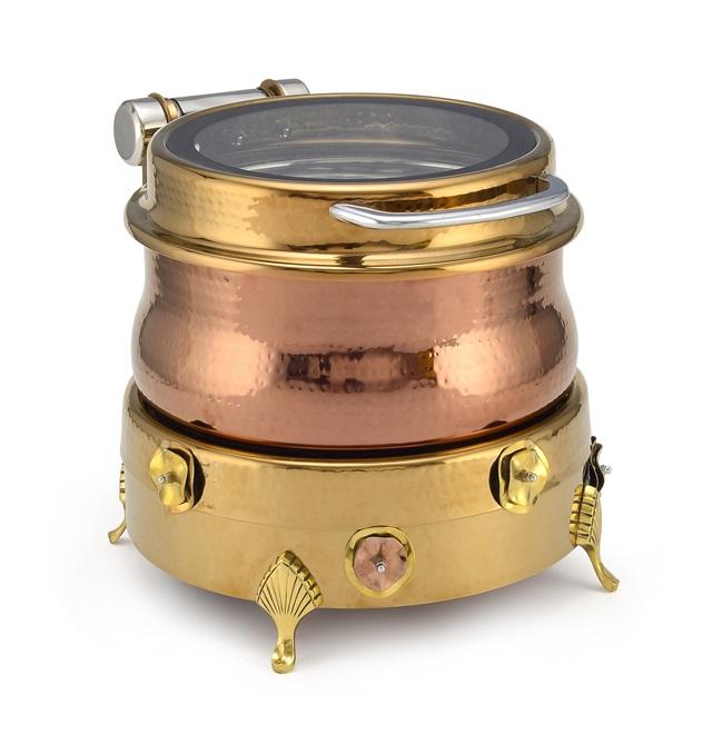 อุปกรณ์สำหรับถืออุ่นจานสแตนเลสเคลือบสีทองแบบดั้งเดิมสำหรับงานแต่งงานในโรงแรม