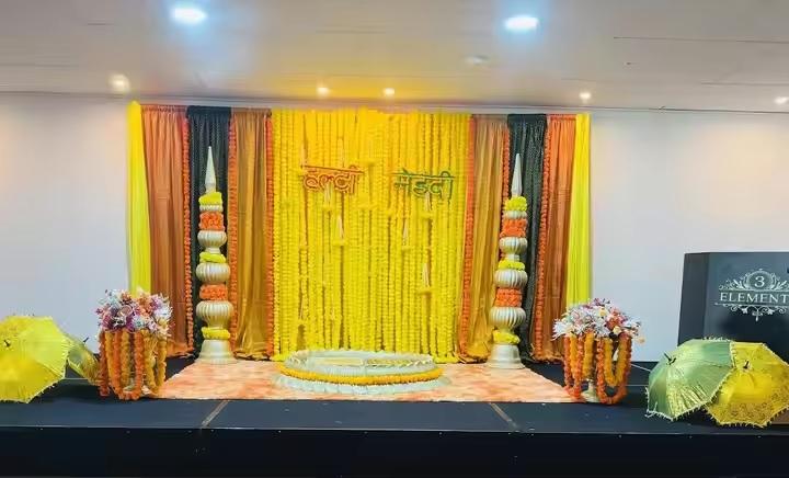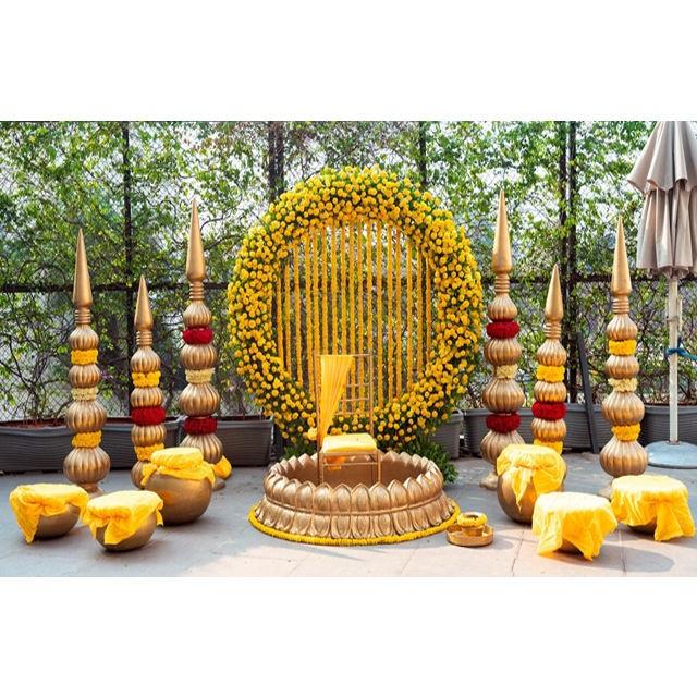 Product name:Traditional Haldi Stage With Lotus Urli And Gumbad