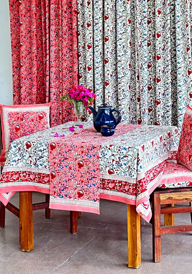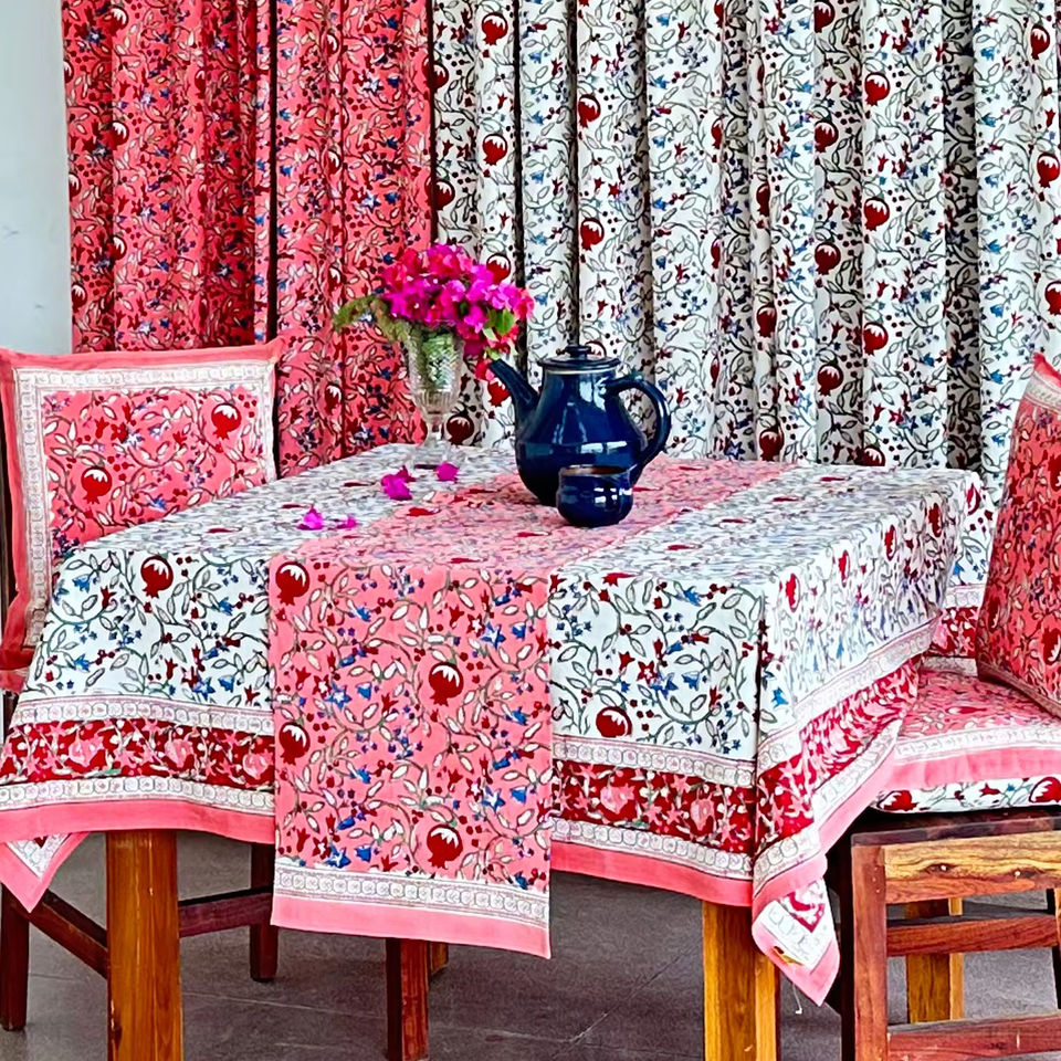 ผ้าคาดโต๊ะผ้าฝ้ายแท้ปักลายบล็อกทำจากผ้าใบคอตตอนชุดรอมฎอนแบบดั้งเดิม100%