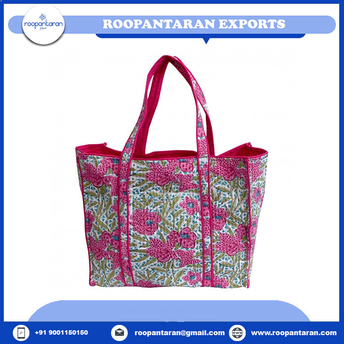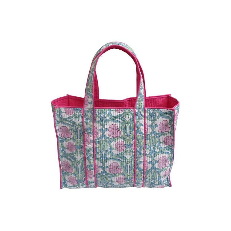กระเป๋าทรงสี่เหลี่ยมทำจากผ้าฝ้ายพิมพ์ลายบล็อกด้วยมือแบบดั้งเดิมมีกระเป๋าด้านในกระเป๋าตอนเย็นลดราคา