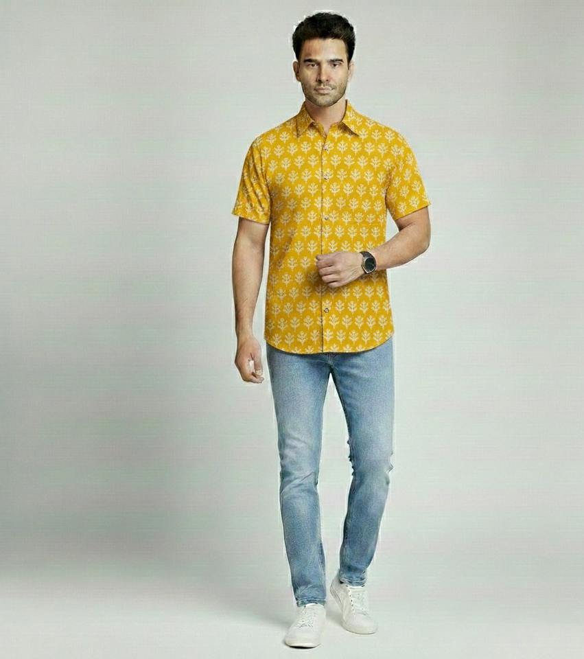 เสื้อเชิ้ตบาติกผ้าฝ้าย 100% ลายทางพิมพ์ลายด้วยมือแบบดั้งเดิมสำหรับผู้ชายใส่ในฤดูร้อน | เสื้อครึ่งแขนที่ระบายอากาศได้ดีและเป็นมิตรกับสิ่งแวดล้อม