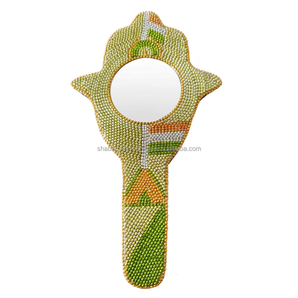กระจกมือถือประดับลูกปัดเคลือบเงาแบบดั้งเดิม งานฝีมือประณีต ตกแต่งสไตล์วินเทจ น้ำหนักเบา พกพาสะดวก กระจกแต่งหน้าประดับลูกปัดสีทอง