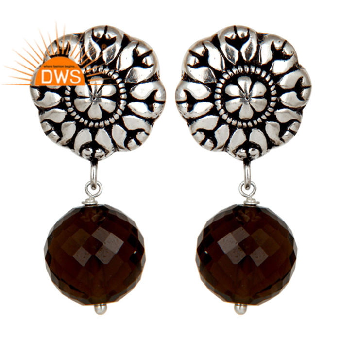 ต่างหูควอตซ์สีเงินทองเหลืองเคลือบออกซิไดซ์ทำด้วยมือแบบดั้งเดิมสำหรับเป็นของขวัญสำหรับผู้หญิงคอลเลกชันวินเทจของเธอ