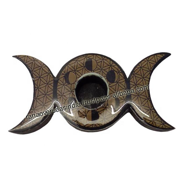 ธูปไม้ทำด้วยมือแบบดั้งเดิมและเตากรวยยังสามารถใช้เป็นเชิงเทียนในรูปดวงจันทร์สามดวง