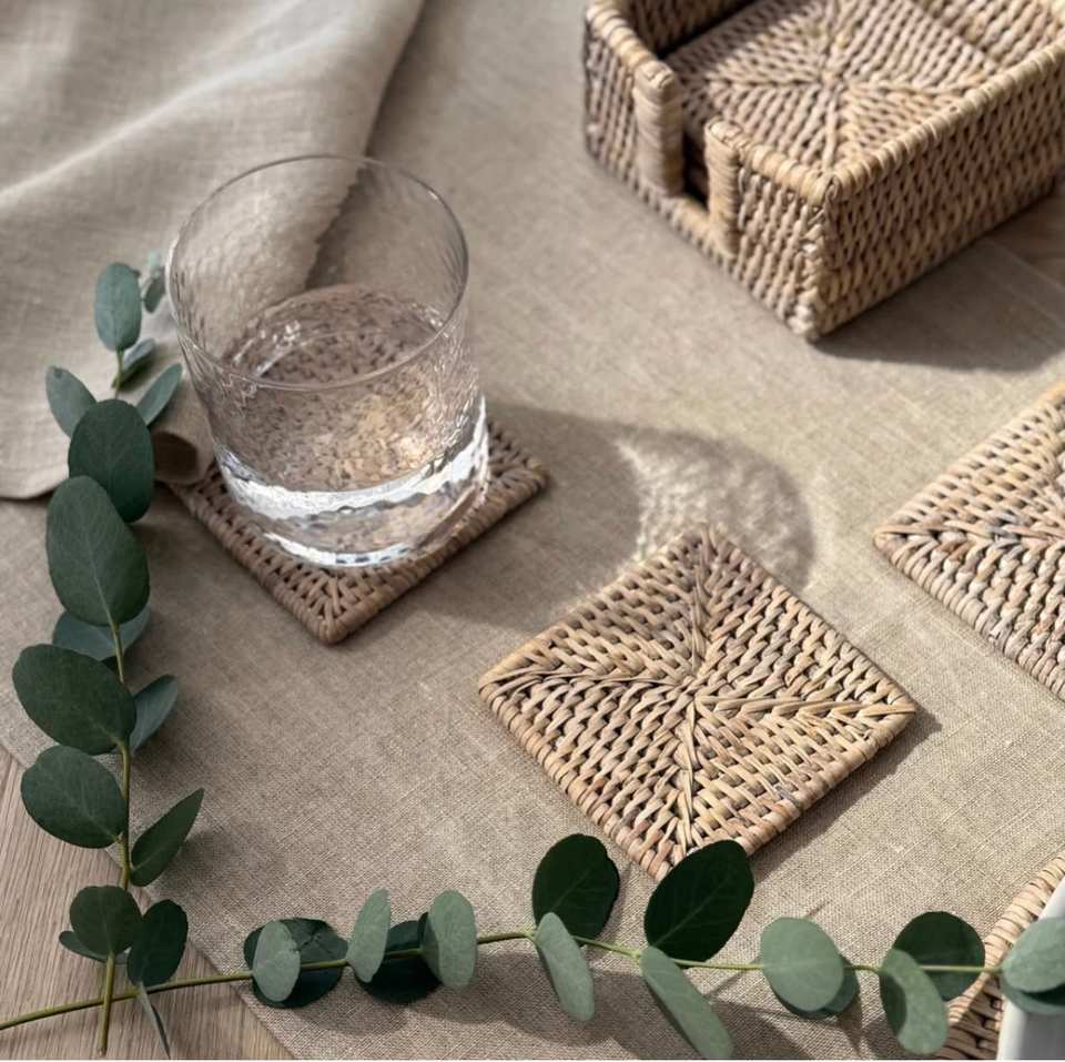 Traditional Handwoven Rattan Coaster With Unique Patterns Adding Cultural And Artistic Flair To Your Dining Table Or Coffee