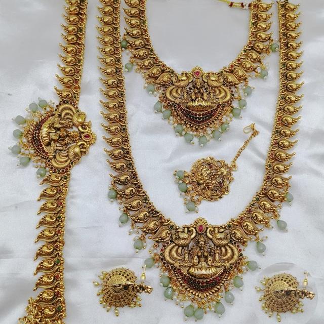 ชุดสร้อยคอพร้อมต่างหู Tikka และเข็มขัดรัดสะโพกสำหรับงานแต่งงาน
