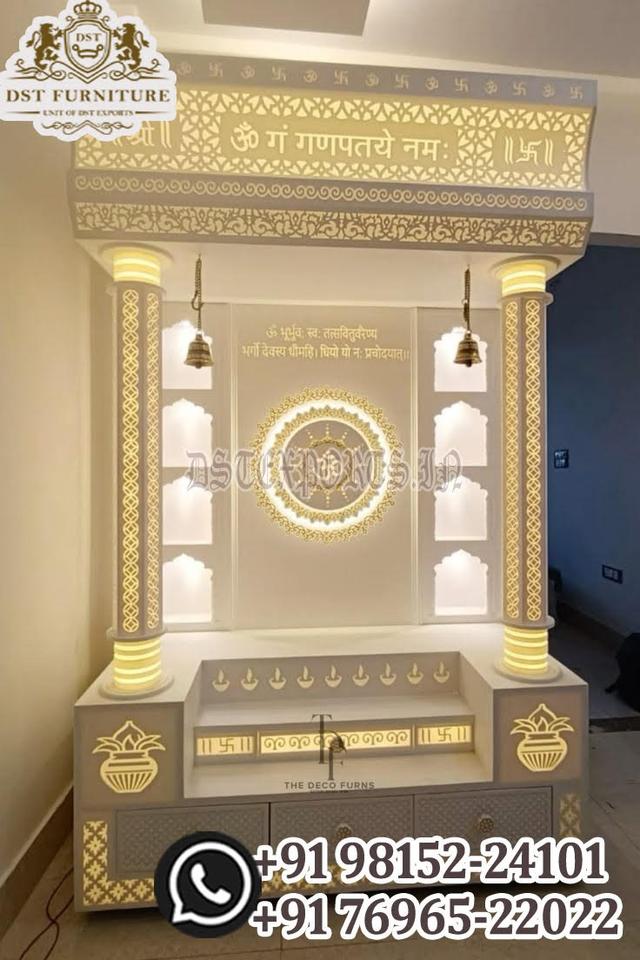หิ้งบูชาฮินดูแบบดั้งเดิมทำจากไม้สักแท้พร้อมโดมทรงล่าสุดสไตล์ดวารากะดิช ซื้อชุดบูชาสีขาว