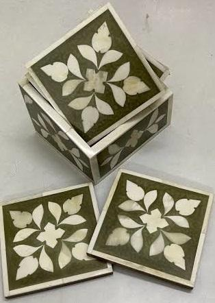 ชุดจานรองแก้วแบบสี่เหลี่ยมลายอินเดียโบราณแบบดั้งเดิม ทำจากกระดูกฝังลาย รักษ์โลก ปรับความหนาได้ตามต้องการ ของขวัญสุดพิเศษสำหรับคนรักกาแฟ
