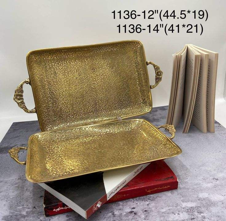ถาดเสิร์ฟทองเหลืองอินเดียแบบดั้งเดิม ขัดเงาด้วยมือ จานโลหะตกแต่งสำหรับงานเทศกาล ของขวัญ และพิธีปูจา