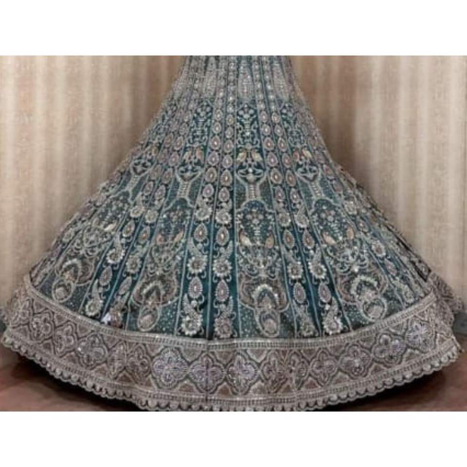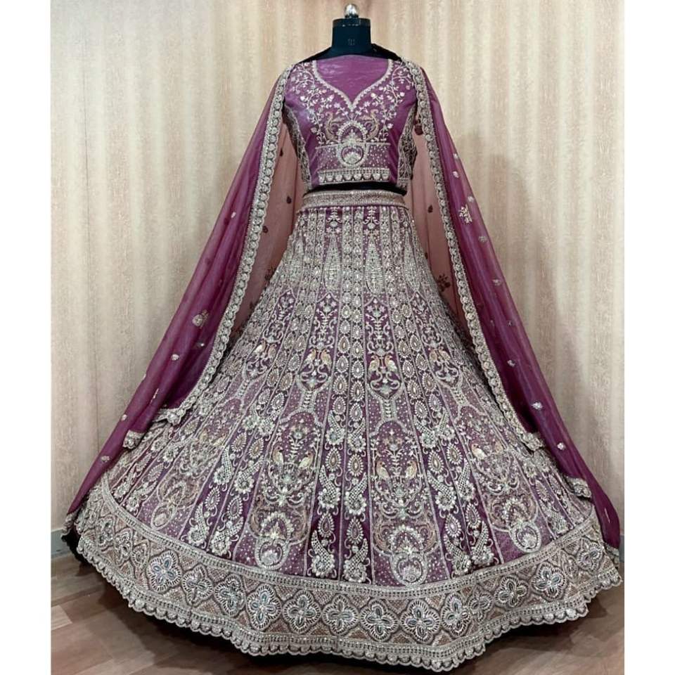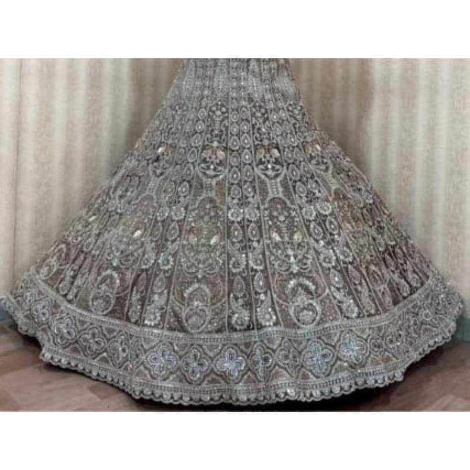 Lehenga choli เจ้าสาวแบบดั้งเดิมอินเดียประดับอย่างหรูหราด้วย zari เลื่อมและงานถักบนกระโปรงตาข่ายไหล