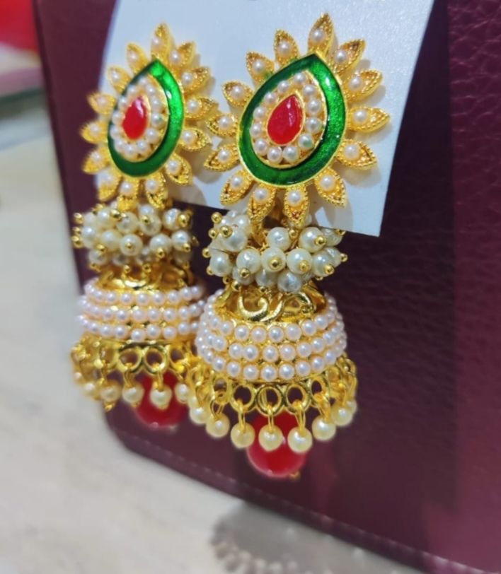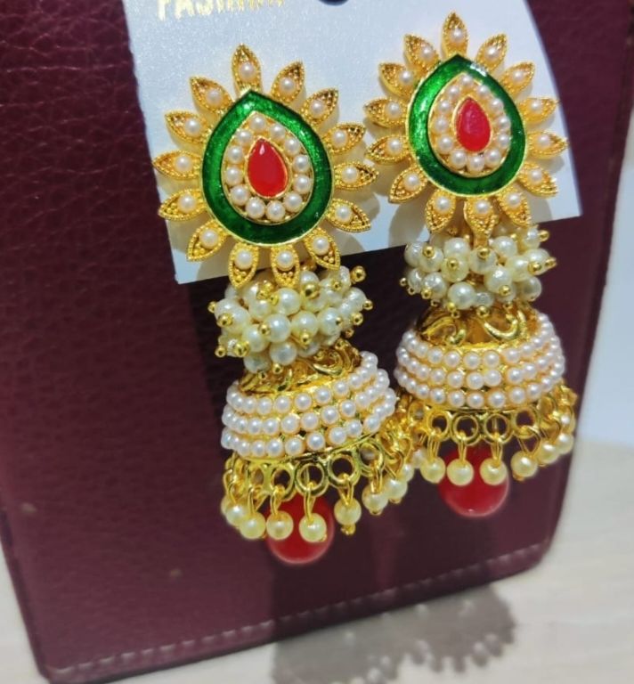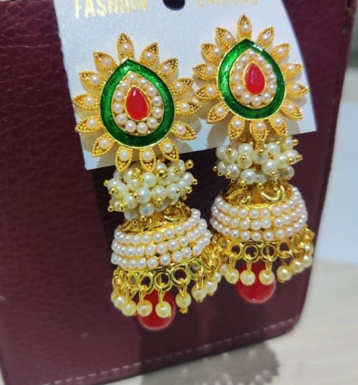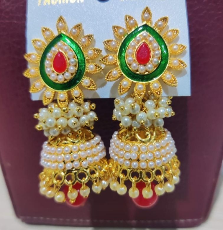 ต่างหู Jhumki ชุบทองสไตล์อินเดียแบบดั้งเดิมน้ำหนักเบาลูกปัดอัลลอยหรูหราเครื่องประดับลูกปัดแฟชั่นแบบประณีต