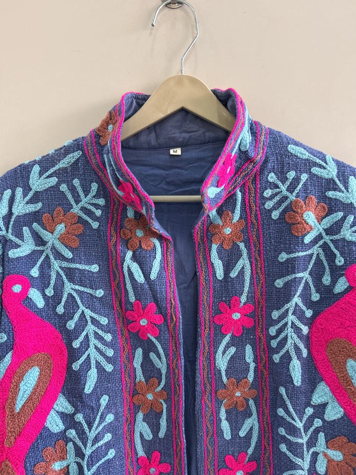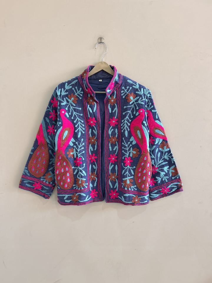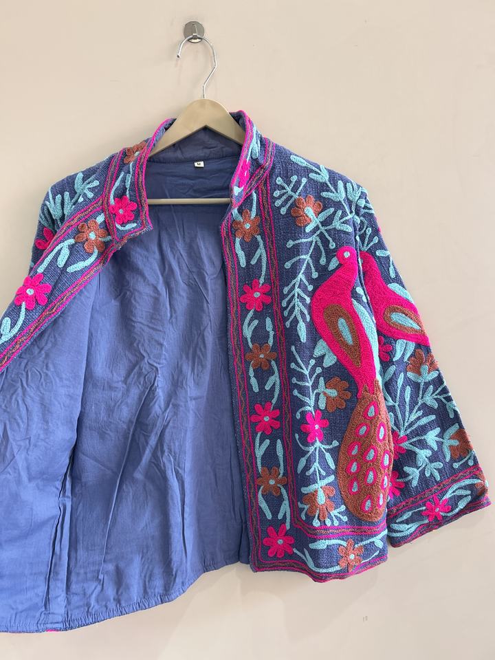 เสื้อแจ็คเก็ตผ้าฝ้ายปักลายซูซานีแบบดั้งเดิมของอินเดียสำหรับผู้หญิง สไตล์โบฮีเมียน