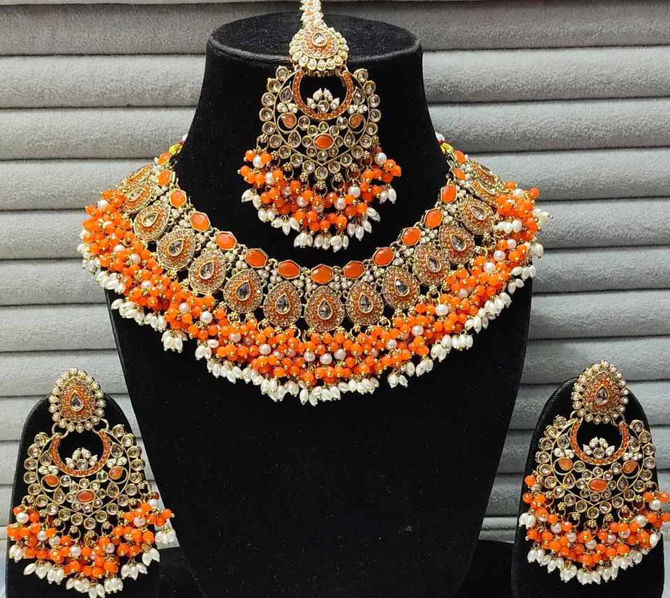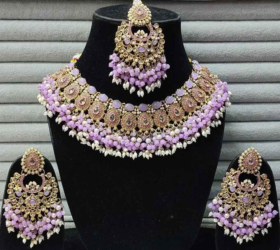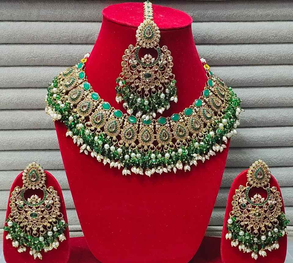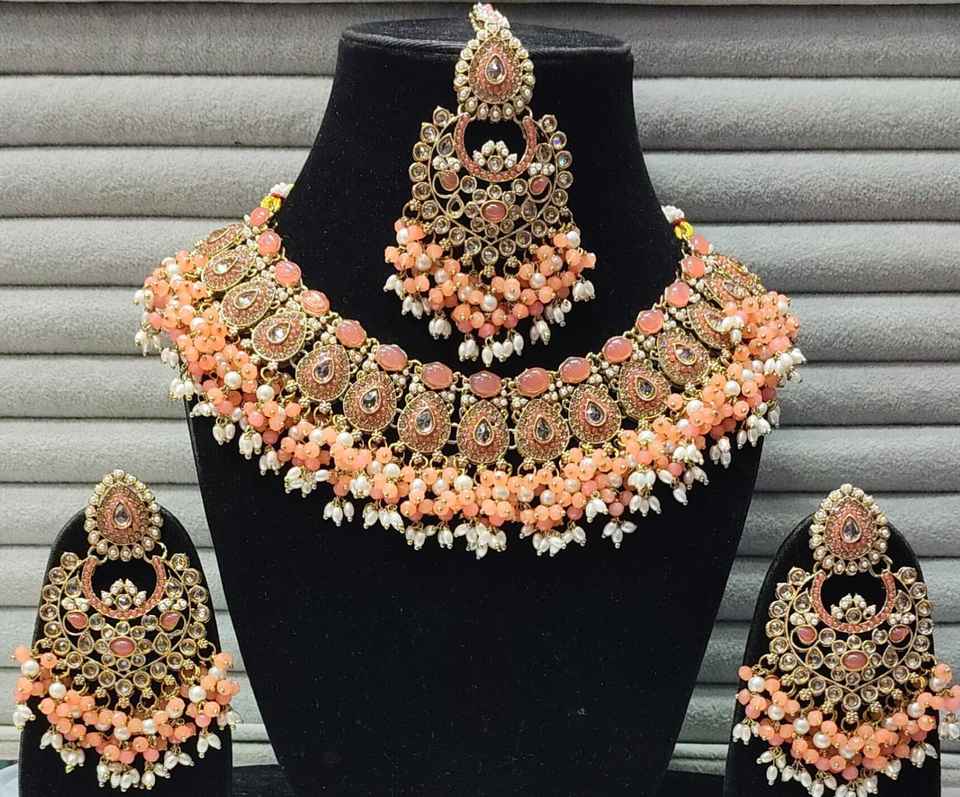 ชุดสร้อยคอแบบคุนดันอินเดียดั้งเดิม ดีไซน์เนอร์เครื่องประดับเจ้าสาวสำหรับงานแต่งงาน วัสดุหลักเป็นทอง