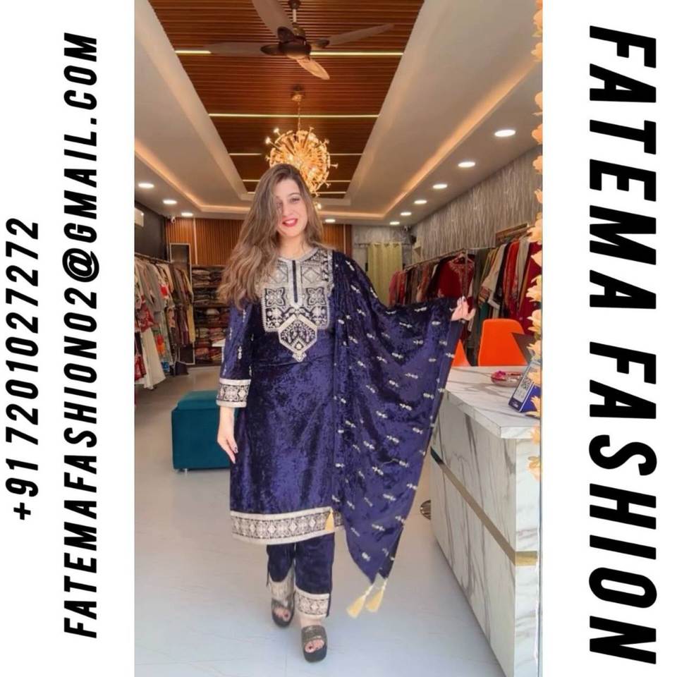 ชุดเดรสสำหรับผู้หญิงชุดเดรสผ้ากำมะหยี่หนืดบริสุทธิ์สไตล์ปากีสถานแบบดั้งเดิมมีการปักลายเรียงตามลำดับการทำงาน