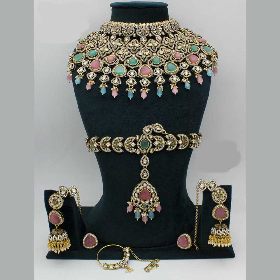 ชุดเครื่องประดับเจ้าสาวกึ่งอินเดียแบบดั้งเดิมพร้อมชุบทองคริสตัลออสเตรียและหิน pota สำหรับเจ้าสาวและสวมใส่ในเทศกาล