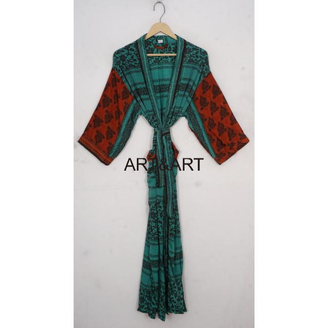เสื้อคลุมกิโมโนผ้าไหมสไตล์อินเดียสำหรับผู้หญิงเสื้อคลุมยาวเต็มตัวเซ็กซี่พร้อมเข็มขัด