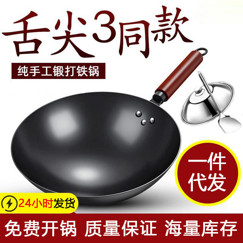 กระทะเหล็กแบบดั้งเดิม ไม่เคลือบ ไม่ติดกระทะ ทนทาน ดีต่อสุขภาพ สำหรับเตาแก๊ส ใช้ในครัวเรือน
