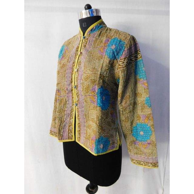 แบบดั้งเดิม Kantha Quilted ฤดูหนาวเสื้อผู้หญิงผ้าฝ้ายพิมพ์อินเดีย Blazer