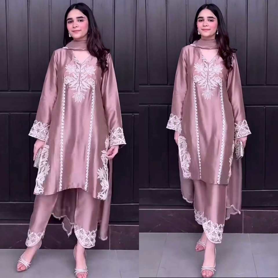 Traditional Khwaab Style Farshi Salwar Suit Heavy Natural Crep Silk Embroidered for Wedding Wear for Export