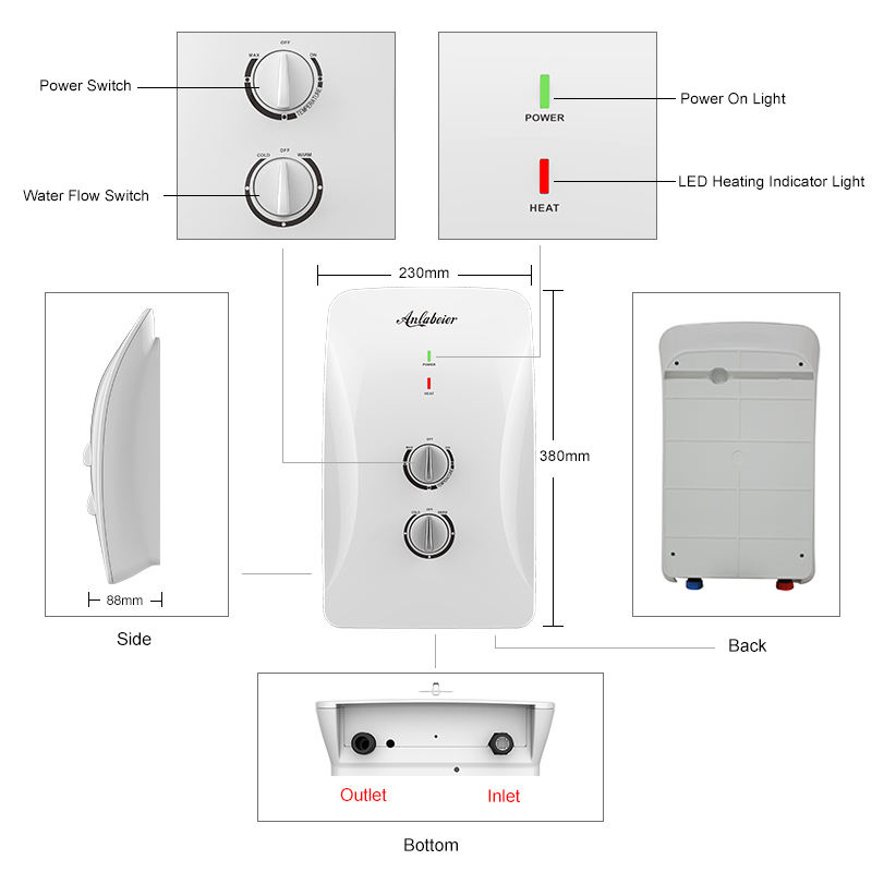 สีของเครื่องทำน้ำอุ่น:ขาว
