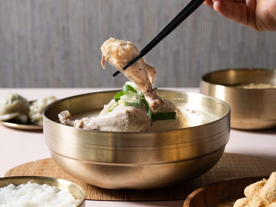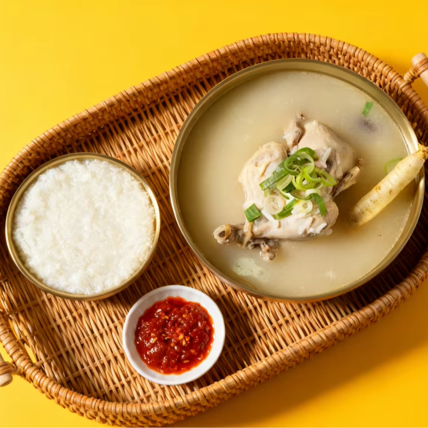 กระเป๋าใส่ซุปไก่โสมเกาหลีแบบดั้งเดิมของแท้พร้อมรับประทานเพื่อสุขภาพ