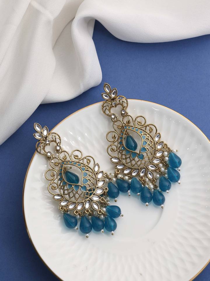 ต่างหูแบบดั้งเดิมประดับดอกไม้โลหะผสมคุนดัน ชานด์บาลี สำหรับผู้หญิง ชุบเมเฮนดี เหมาะสำหรับงานแต่งงาน งานปาร์ตี้ ของขวัญ ประดับมุกเป็นหินหลัก