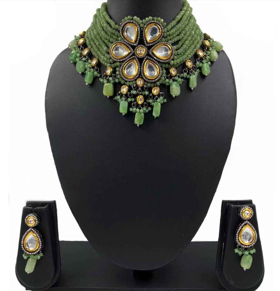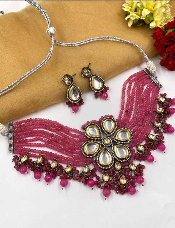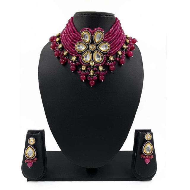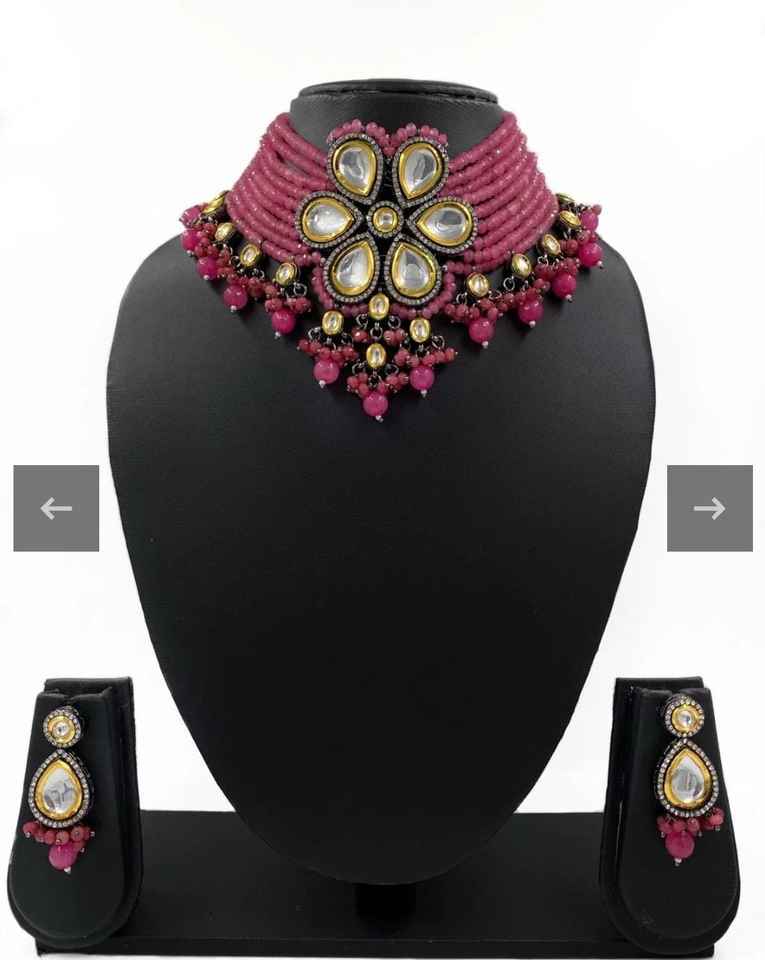 ชุดโช้คเกอร์ Kundan แบบดั้งเดิมพร้อมลูกปัดสีชมพูและต่างหูสำหรับชุดเจ้าสาวสำหรับผู้หญิงสาวๆโช้คเกอร์ Kundan สำหรับงานแต่งงาน