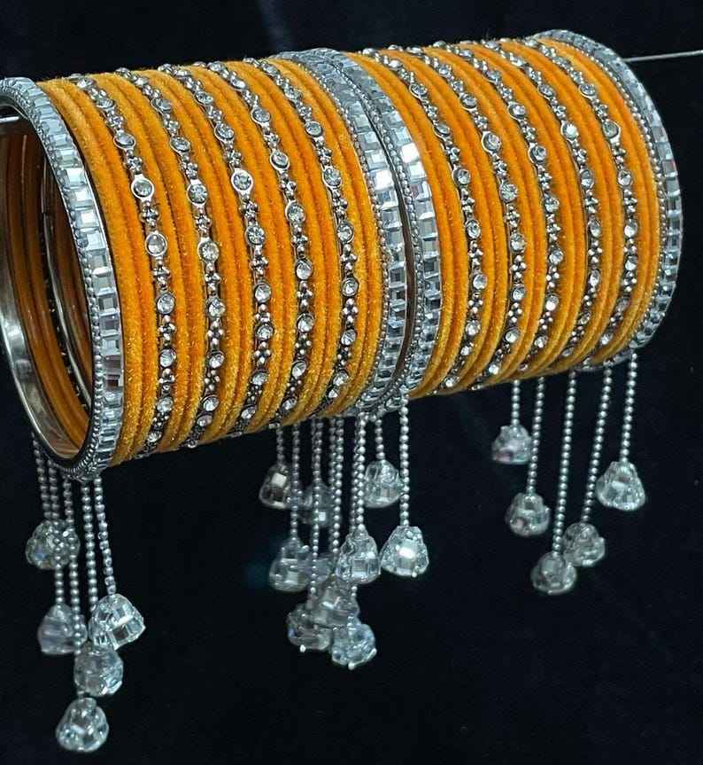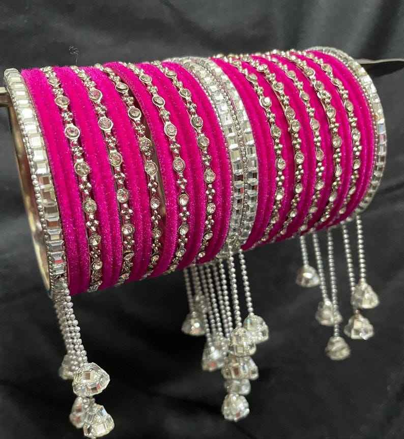 Kundan Jhumka แบบดั้งเดิมชุดกำไลข้อมือไข่มุกหลายเส้นสำหรับงานแต่งงานอินเดียโปรดปราน haldi punjabi chuda