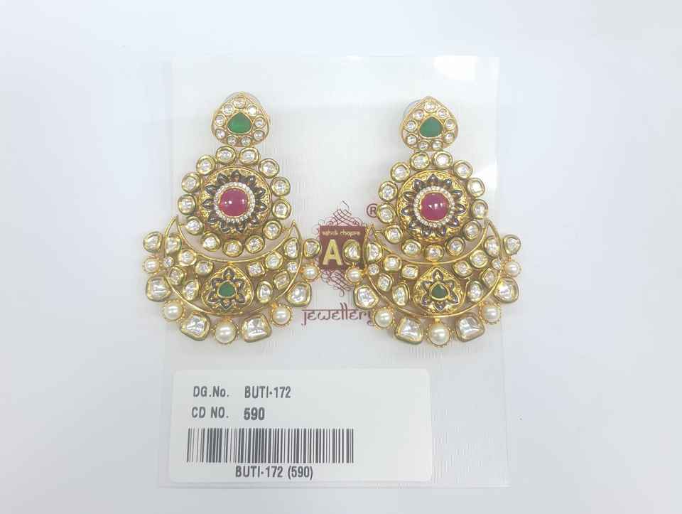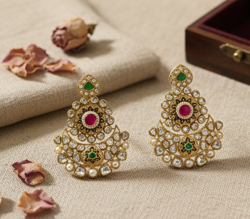 ต่างหูหินคุนดันแบบดั้งเดิมเคลือบทองสำหรับเจ้าสาวและงานเทศกาล ขายส่งเครื่องประดับสำหรับผู้ซื้อในตลาดส่งออก