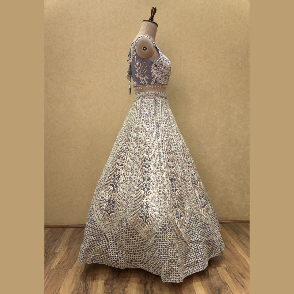 แบบดั้งเดิมลาเวนเดอร์ lehenga พู่พรีเมี่ยม dori & เต้นทำงานกับรายละเอียดงานฝีมือทั้งหมดในราคาขายส่งจากอินเดีย