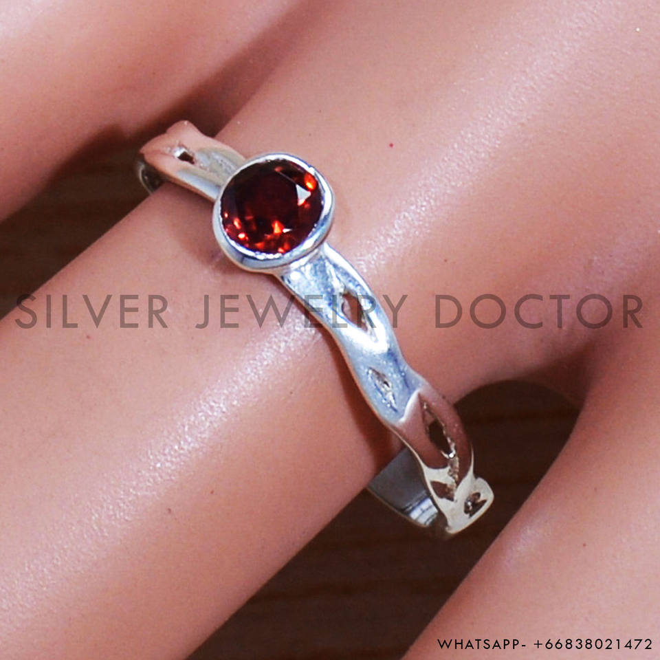 แหวนแต่งงานผู้หญิงเงินแท้ 925 ประดับพลอยโกเมนสีแดงทรงกลมแบบฝังขอบ รับผลิตตามสั่ง ขายส่งเครื่องประดับ แหวนวงเรียบแบบคลาสสิก