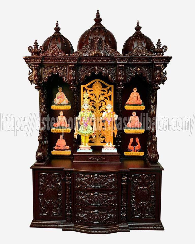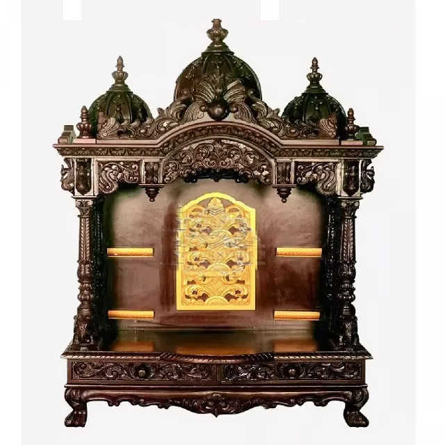 Traditional Look Teak Wood Handmade Temple Heavy Carved Brown Mandir Siddhi Vinayak Indian Pooja Ghar Modern DSTExports Canada