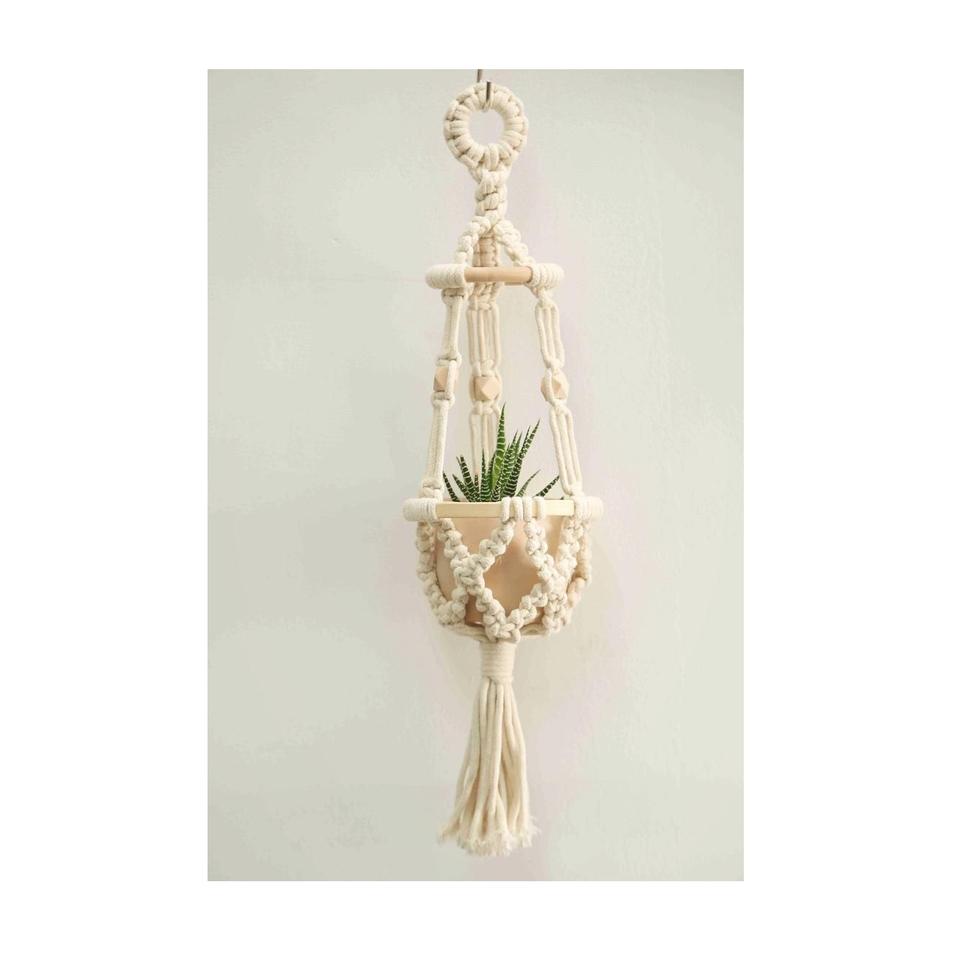 กระถางต้นไม้เชือกมาคราเม่แบบดั้งเดิมสำหรับการตกแต่งบ้านสไตล์วัฒนธรรม ผสมผสานงานฝีมือดั้งเดิมกับการออกแบบตกแต่งภายในสมัยใหม่