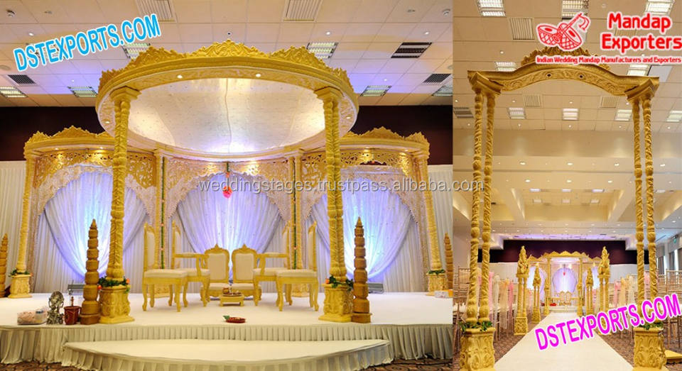 Manavarai แบบดั้งเดิมรูปปั้นนกยูงแกะสลักสีทองรูปพระจันทร์ครึ่งเสี้ยวสำหรับงานแต่งงานธีมนกยูงแมนดาร์ไวแบบครึ่งพระจันทร์ครึ่งเสี้ยวแมนดาปสหรัฐอเมริกา
