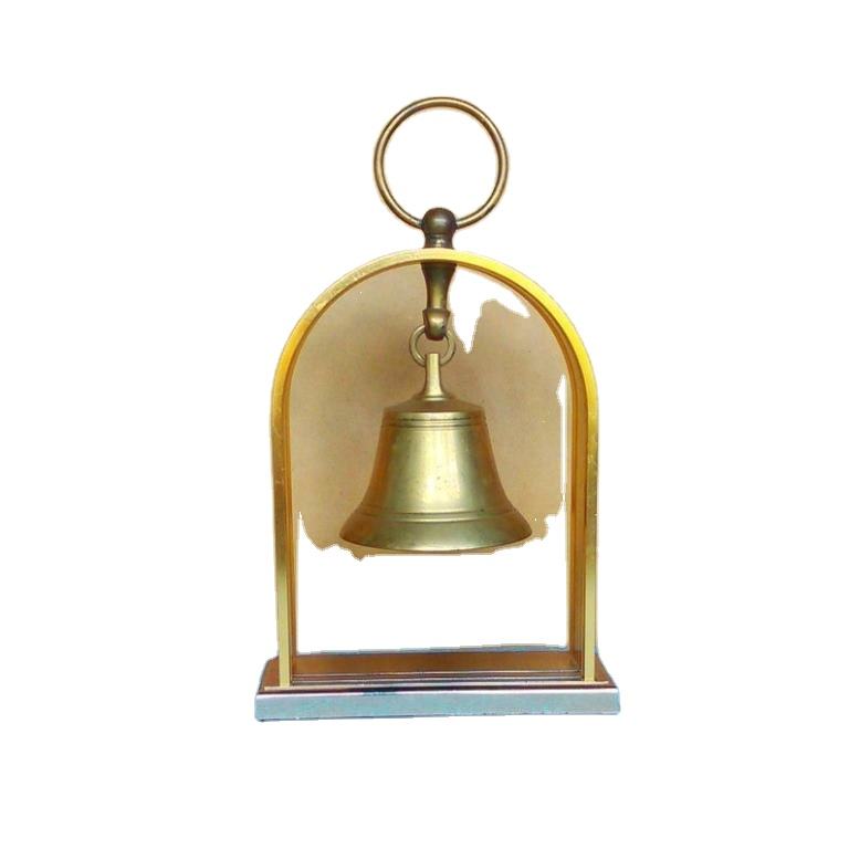 ระฆังโลหะแบบดั้งเดิมขายร้อนการออกแบบใหม่พร้อมขาตั้งระฆังระฆังโลหะคุณภาพสูงในทองเหลืองระฆังบนโต๊ะอาหารสําเร็จรูปอย่างดี