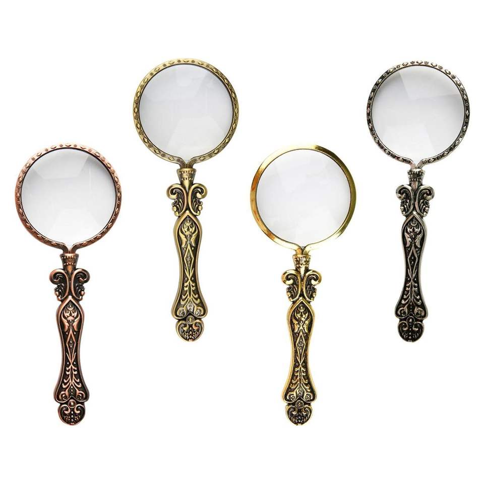 แว่นขยายโลหะแบบดั้งเดิมพร้อมกรอบสวยงาม เหมาะสำหรับโต๊ะอ่านหนังสือในห้องสมุดและการทำงานวิจัย