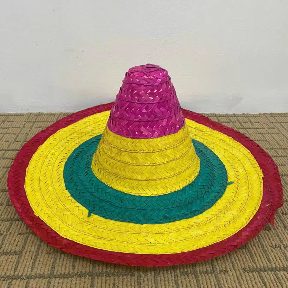 หมวกฟางทรงโซมเบรโรแบบดั้งเดิมของเม็กซิโก ลายทางประดับพู่ ขนาดเส้นรอบศีรษะ 60-62 ซม. สีฟางสดใส สำหรับงานปาร์ตี้ ชายหาด และเล่นสกี