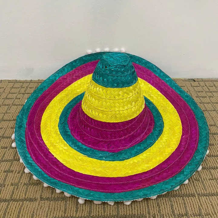 หมวกทรงซอมเบรโรแบบดั้งเดิมของเม็กซิโก ตกแต่งด้วยผ้าเซราเป ปีกกว้าง เหมาะสำหรับงานปาร์ตี้แบบสบายๆ กีฬา และปั่นจักรยาน