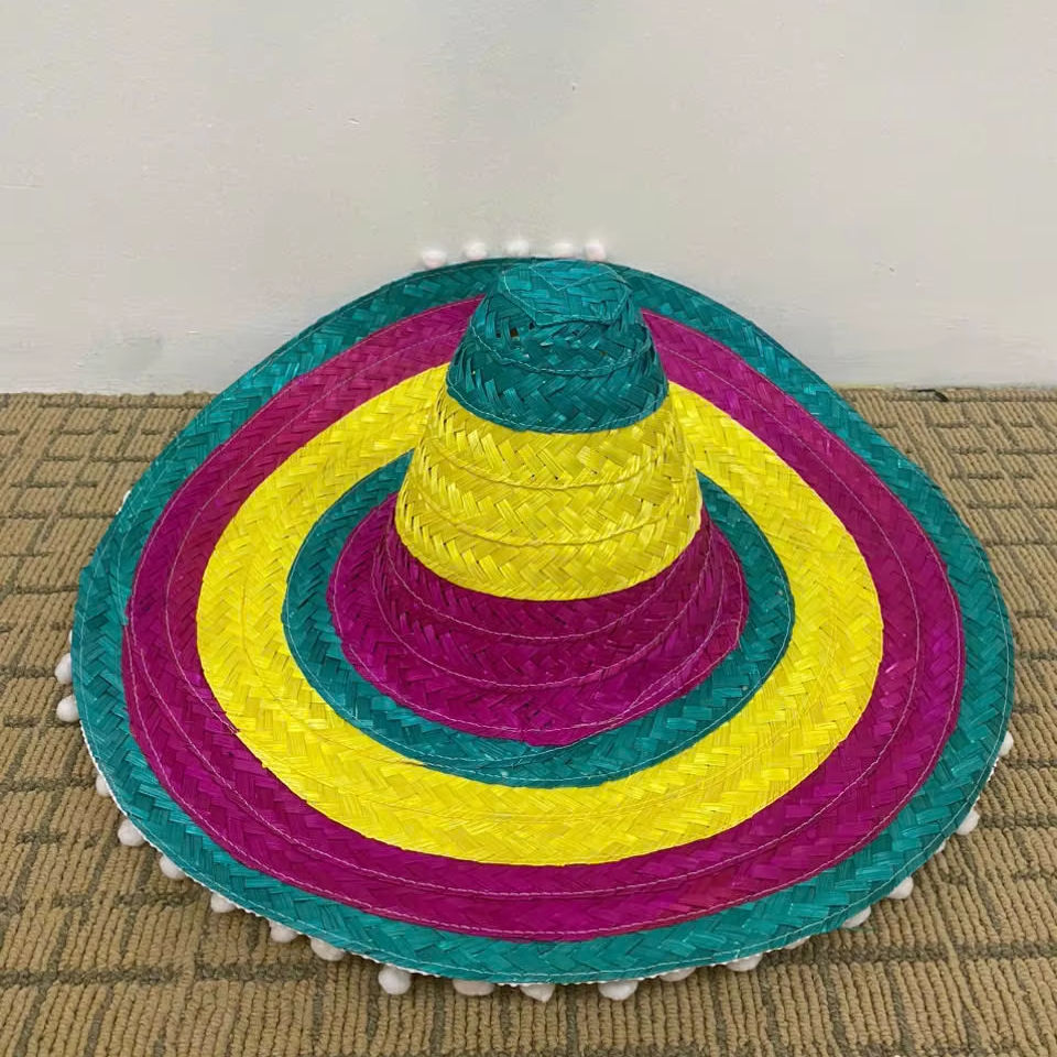 หมวกฟางลายทางแบบเม็กซิกันดั้งเดิม พร้อมพู่ห้อย ขนาดเส้นรอบศีรษะ 60-62 ซม. สีสันสดใส สำหรับงานปาร์ตี้ธีมเฟียสต้า กิจกรรมกลางแจ้ง และตกปลา