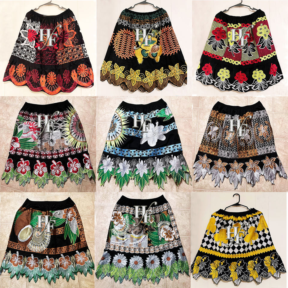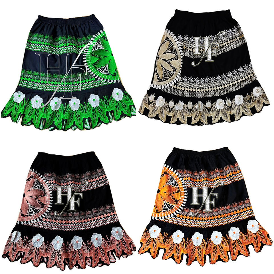 กระโปรงผ้า Pohnpei สำหรับผู้หญิงกระโปรงผ้าคอตตอนปักลายดอกไม้สไตล์เกาะสไตล์ดั้งเดิม